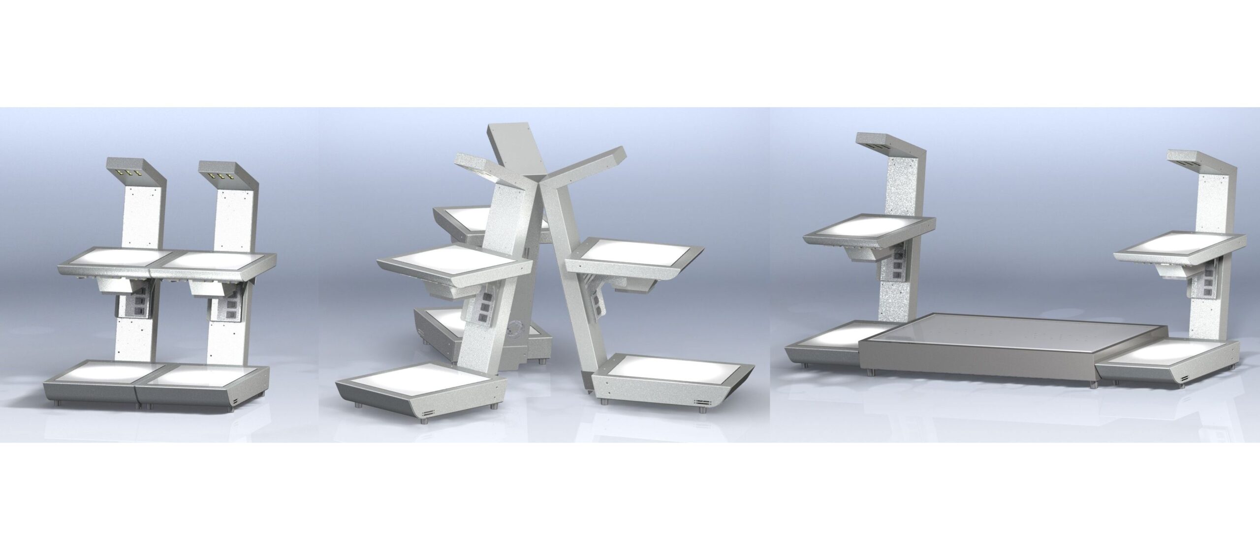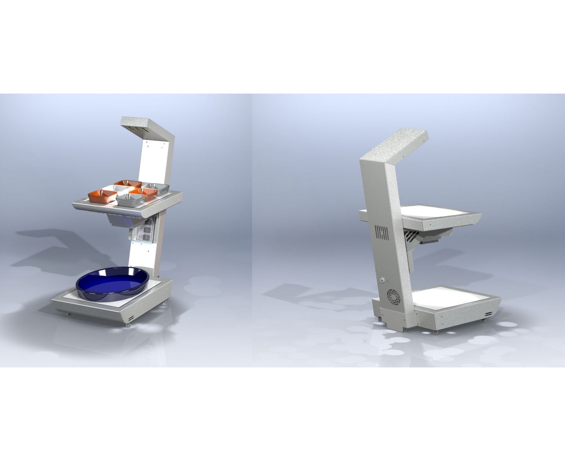 大皿や小鉢を組み合わせでき使用スペースを最小限に抑え、商品陳列の充実化を図ります。 2段式による立体感に加え、各段白色のLED照明によって食材を煌びやかに演出します。プレート表面をホワイトガラスにすることでクール感を出しデザイン性を向上させました。